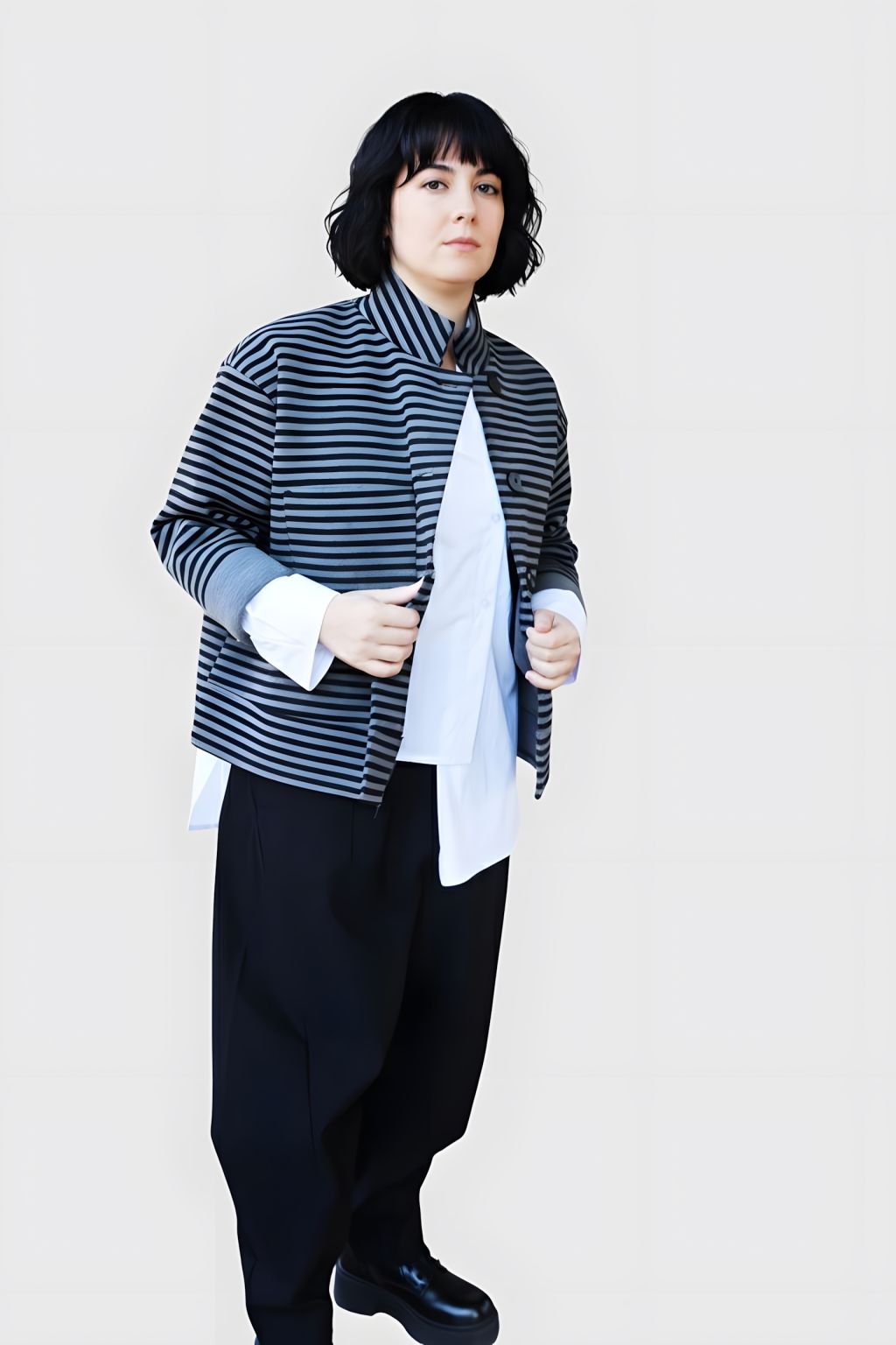 Giacca righe con tascone lato, taglia unica, unica variante di colore.