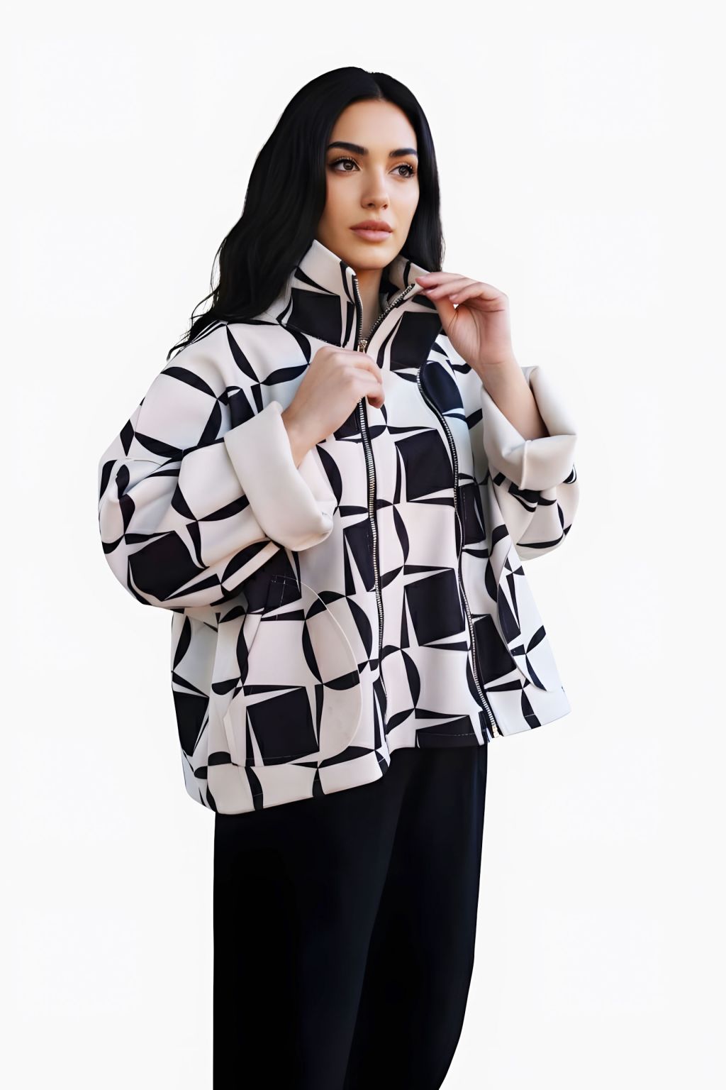 Giacca doppia zip fantasia , taglia unica, colore unico