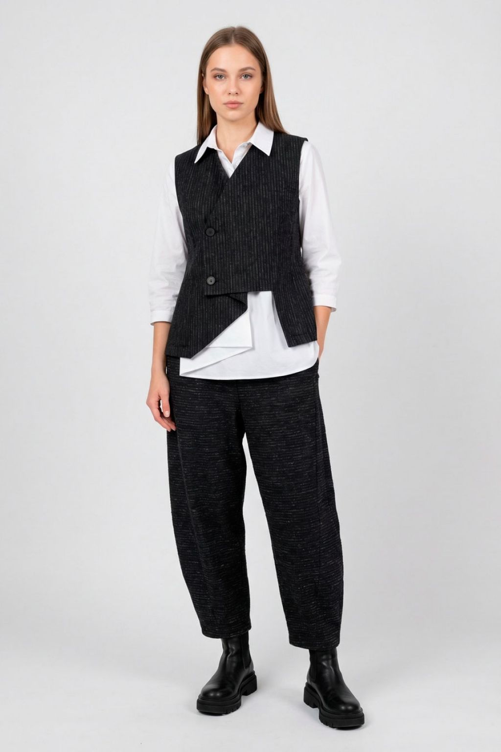 Gilet asimmetrico con bottoni laterali.