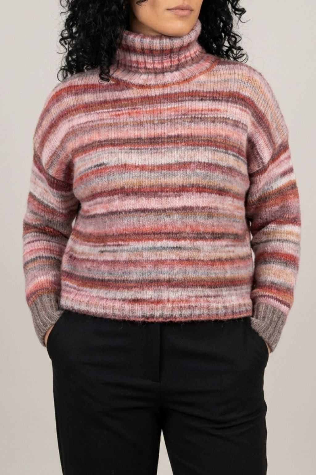 Maglione collo alto multicolor, taglia unica.