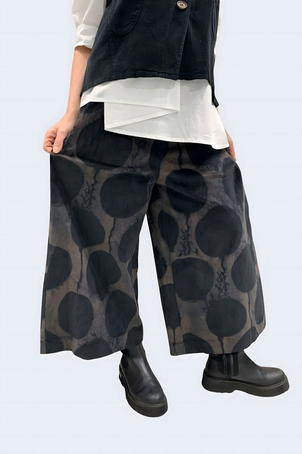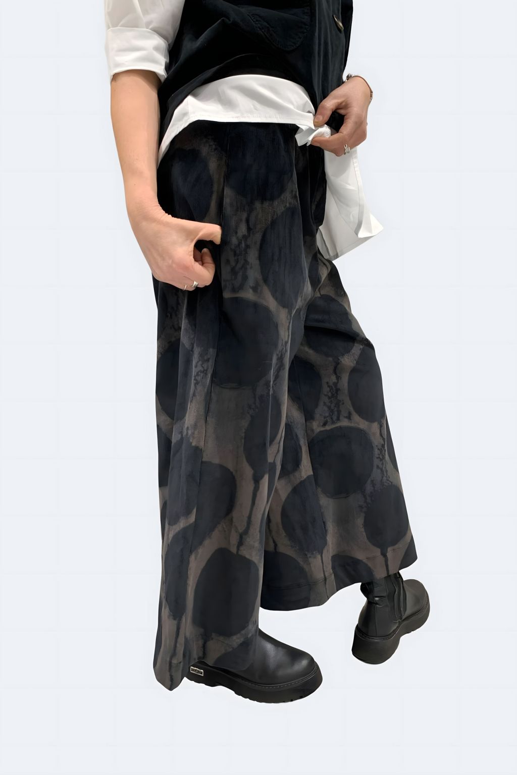 Pantalone palazzo in velluto duemila righe con bolle sfumate.