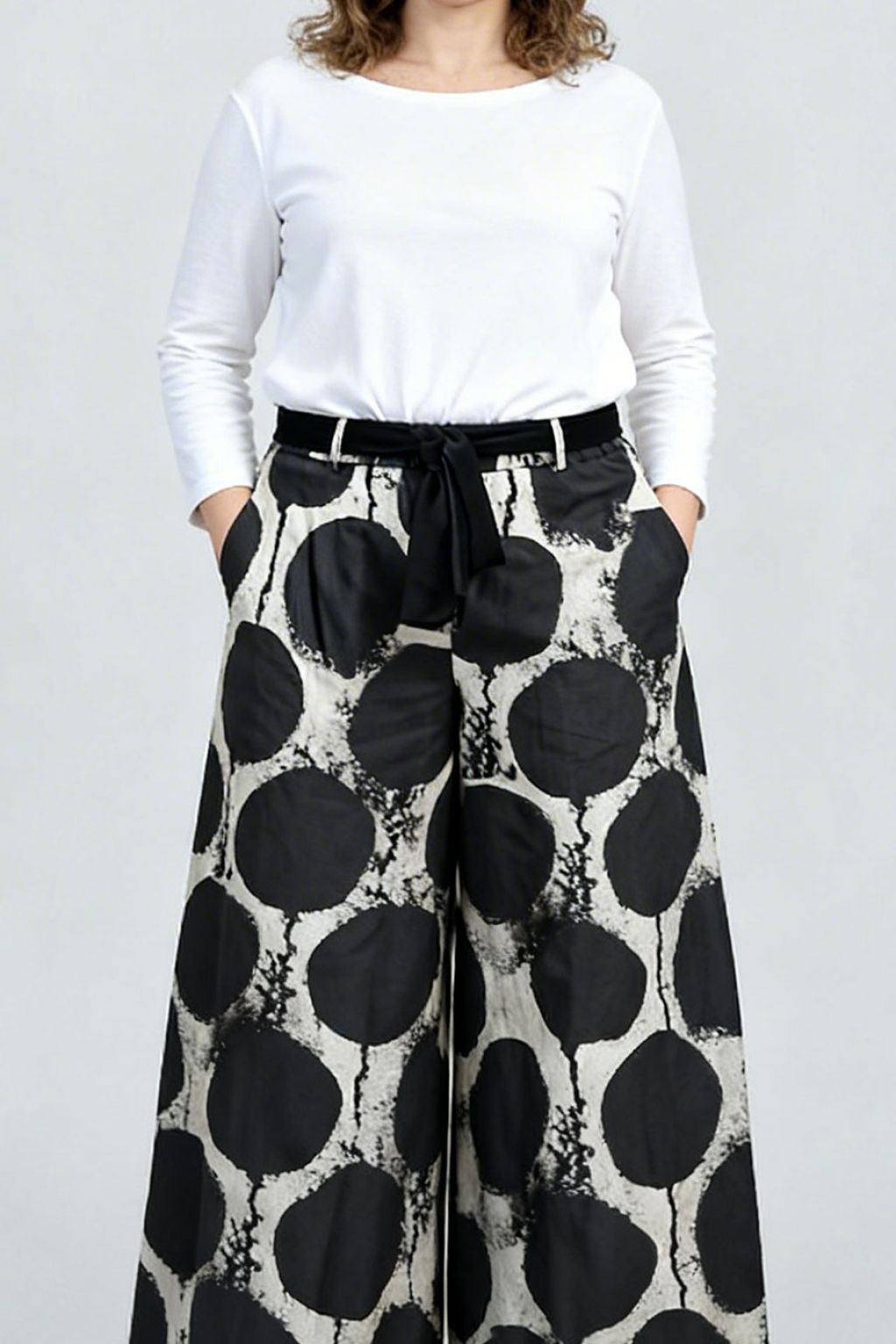 Pantalone con due pences davanti, elastico nella parte posteriore, tasche laterali, taglia unica.