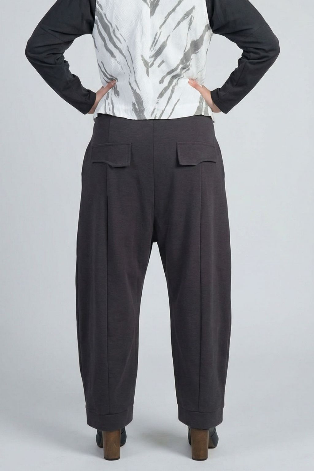 Pantalone con cavallo basso e drappeggi