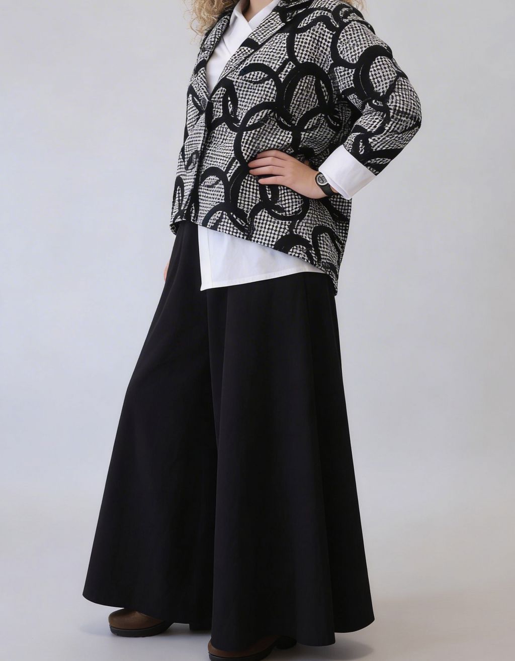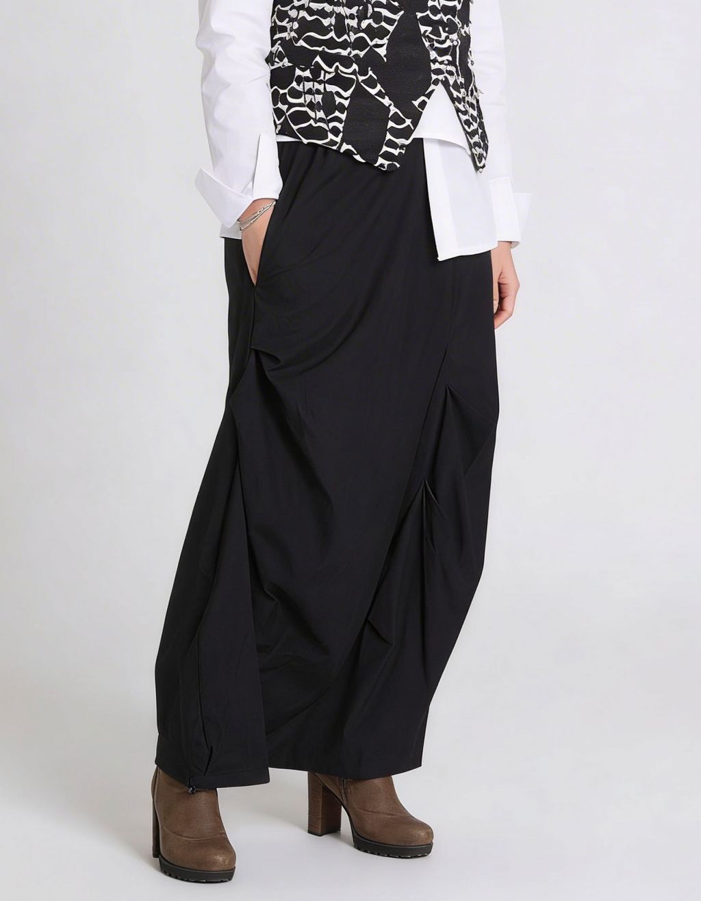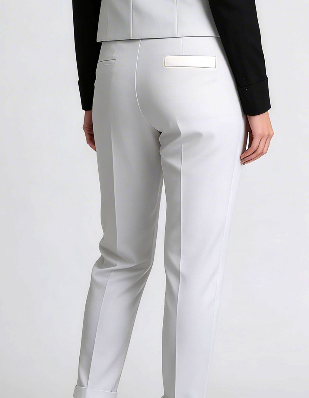 Pantalone in punto milano con cavallo sceso e pences.