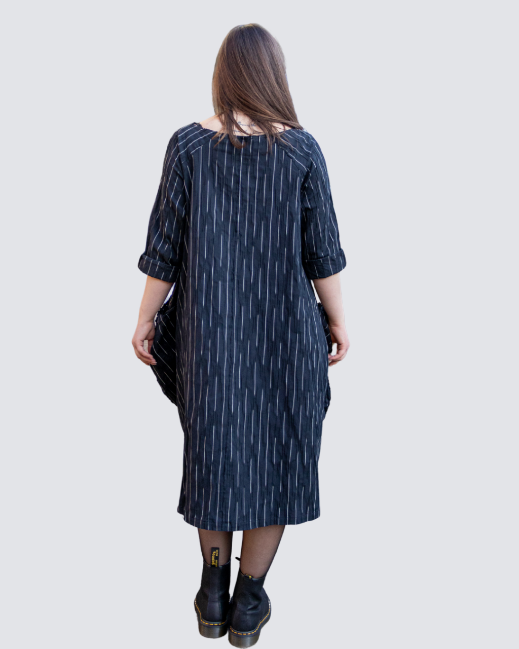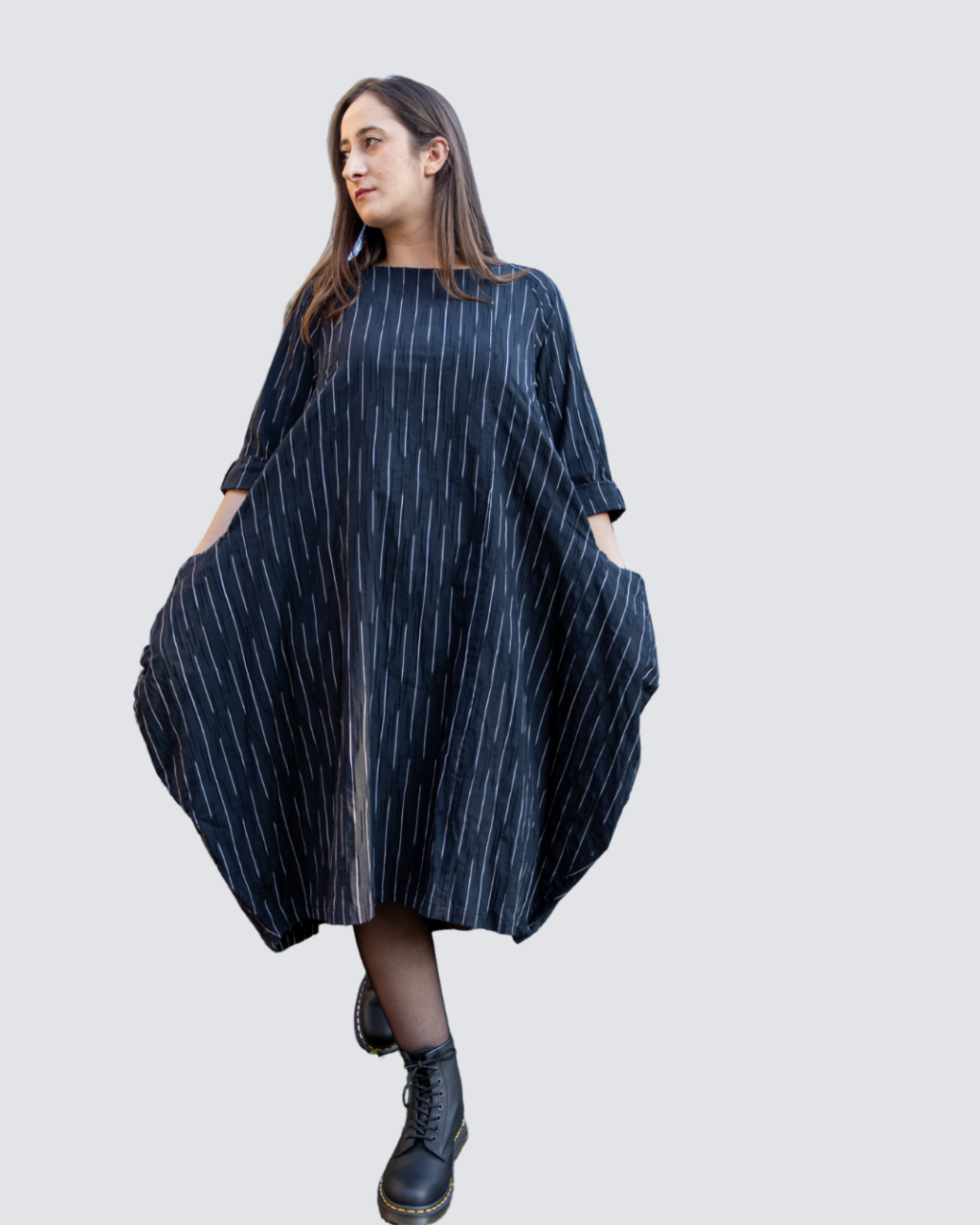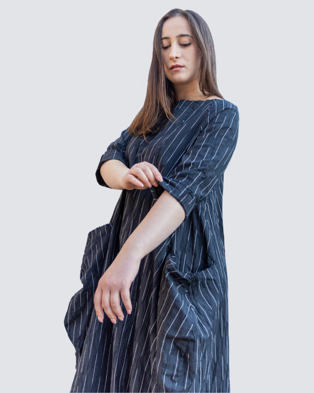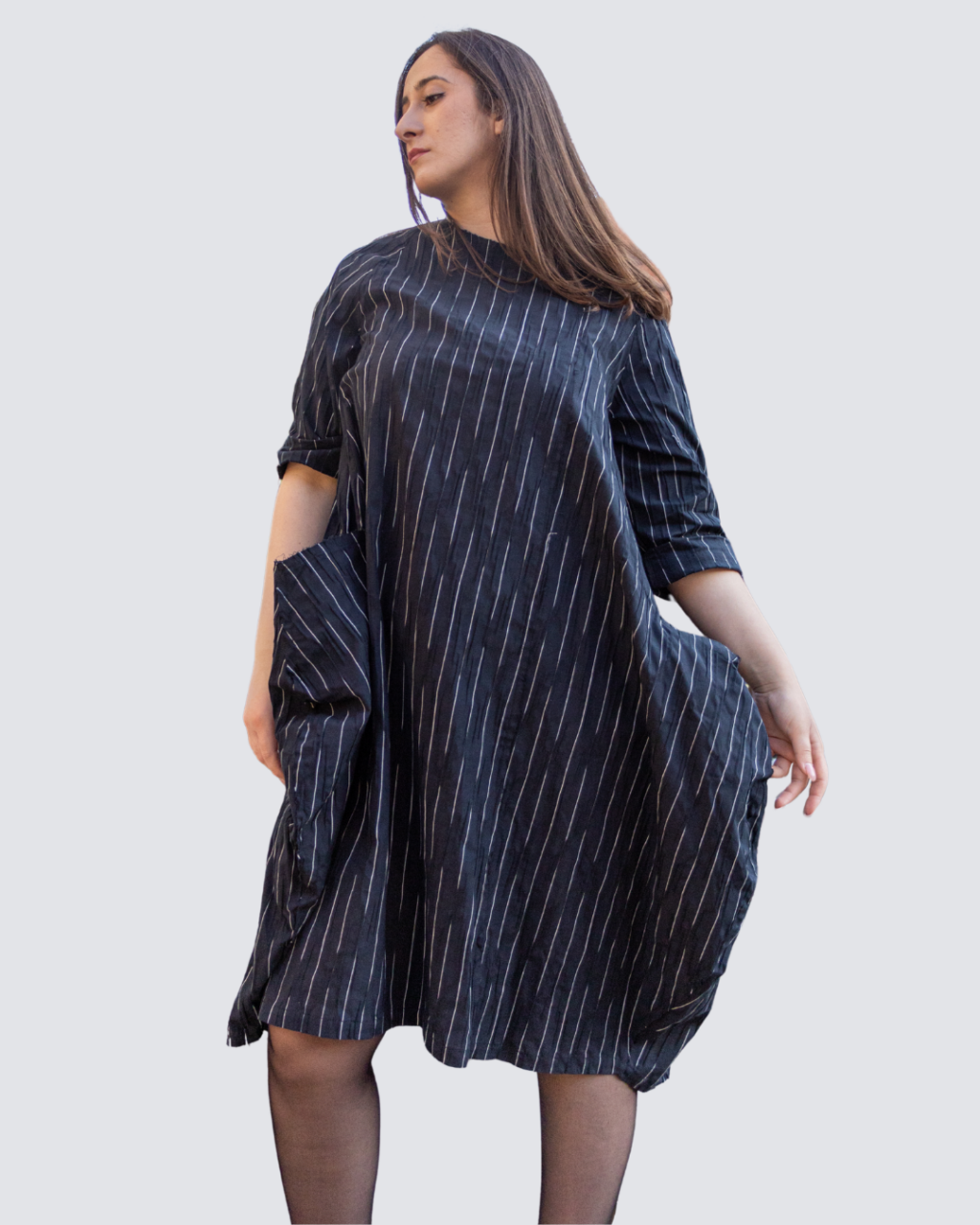 Abito segmenti con tasconi laterali, cuciture a laser.