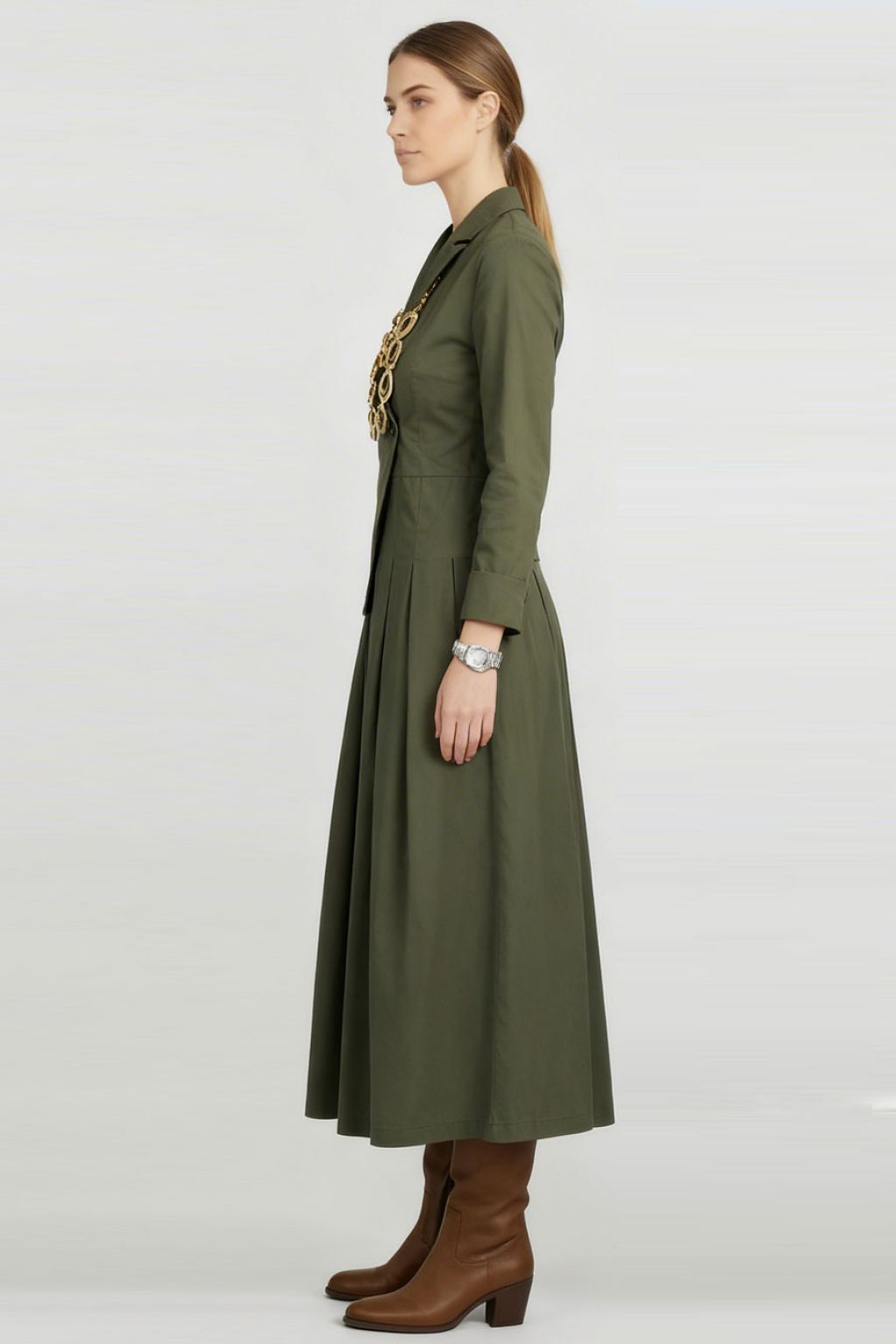 Abito lungo con giacchino sovrapposto.