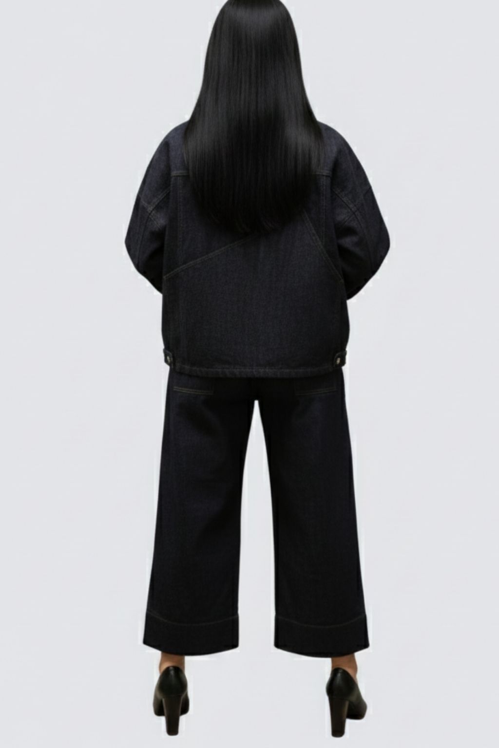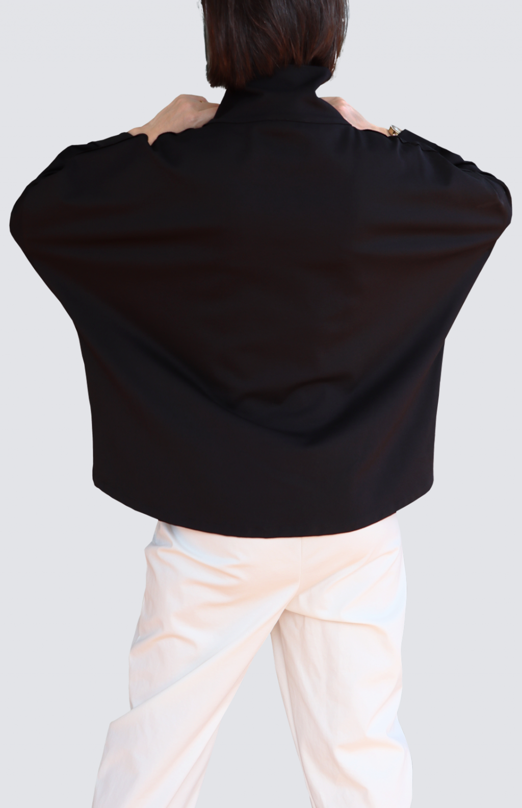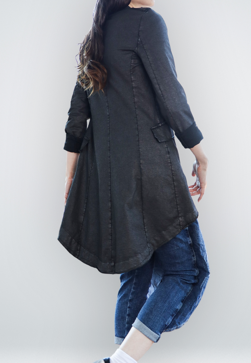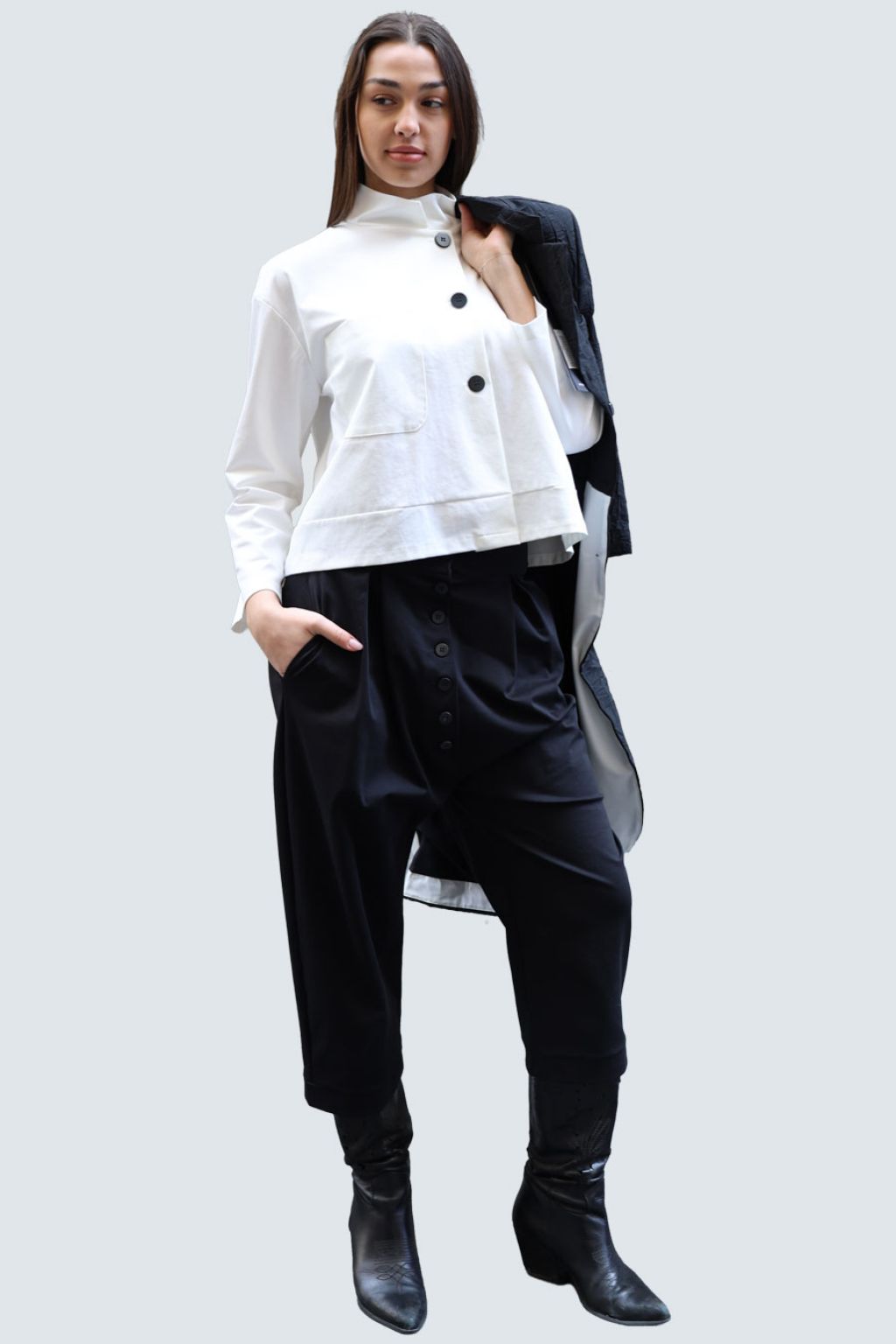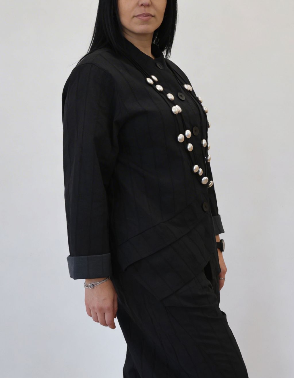Giacca in bengalina asimmetrica.