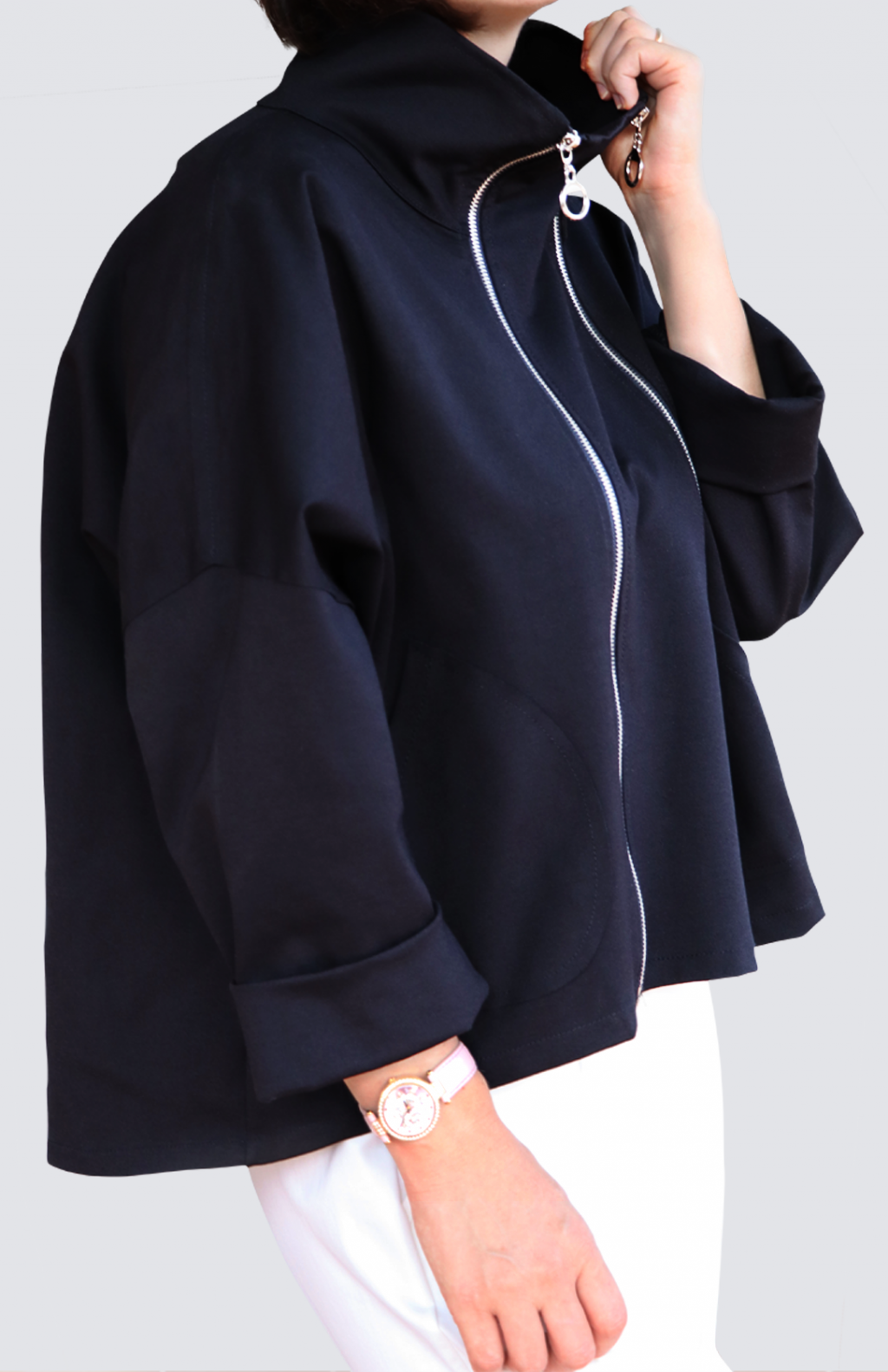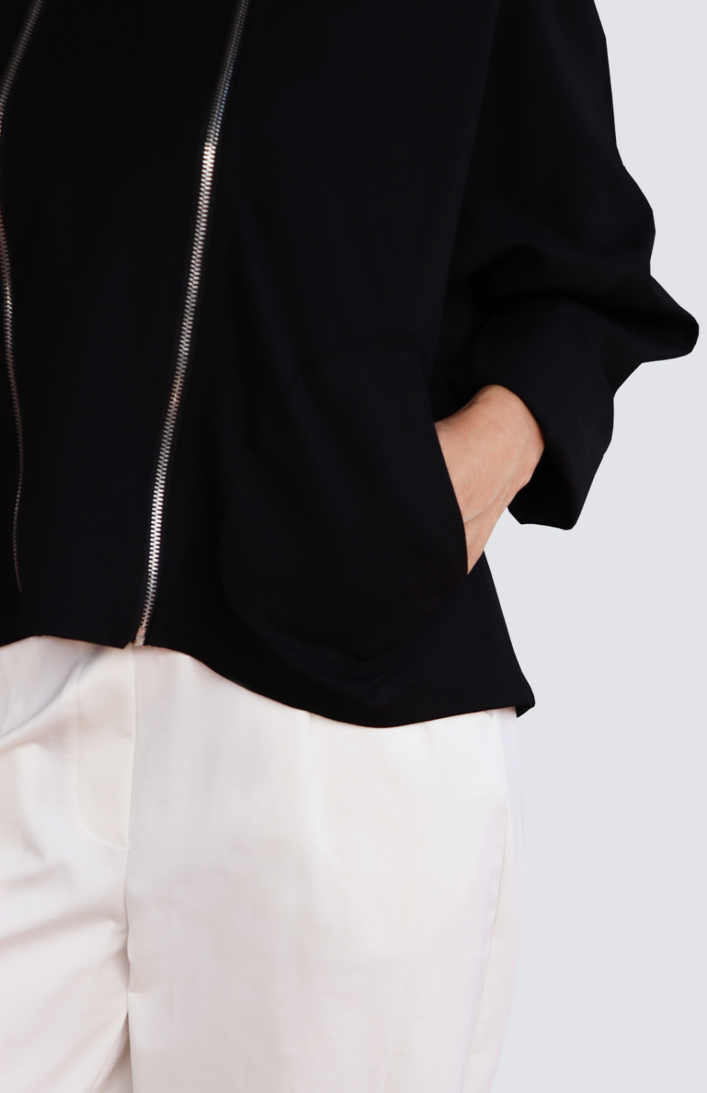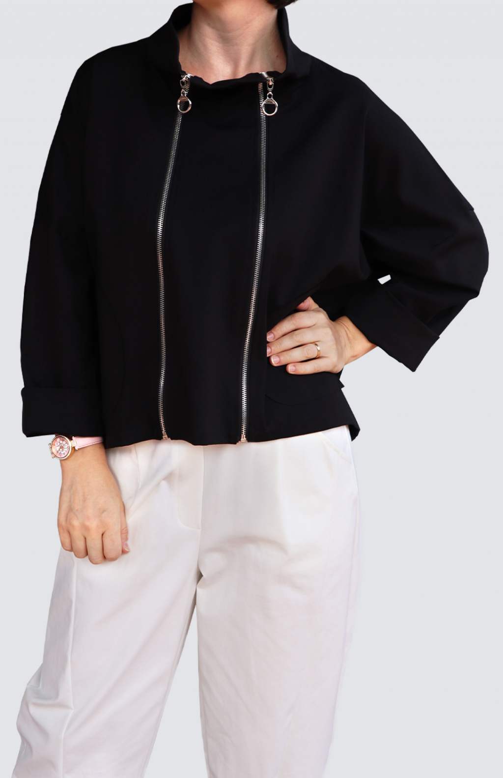 Giacca punto milano con doppia zip e tasche laterali, taglia unica.