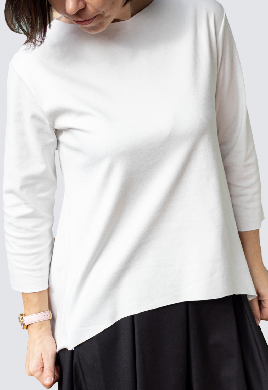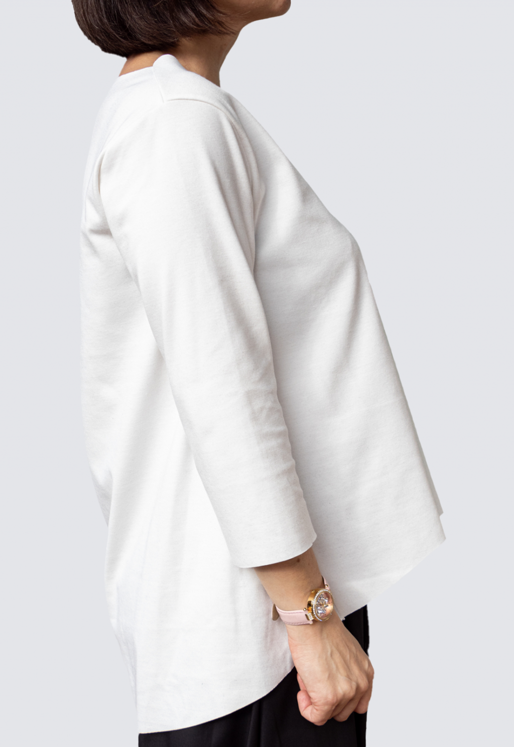 Maglia punto Milano stondata sul davanti.