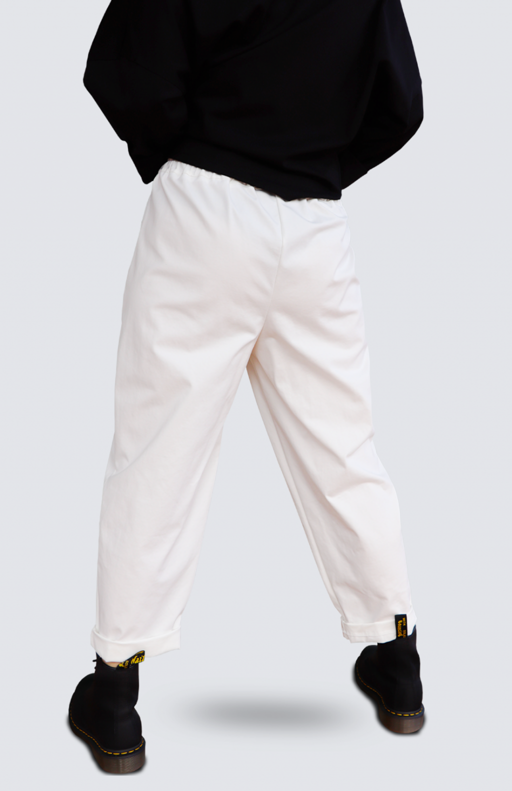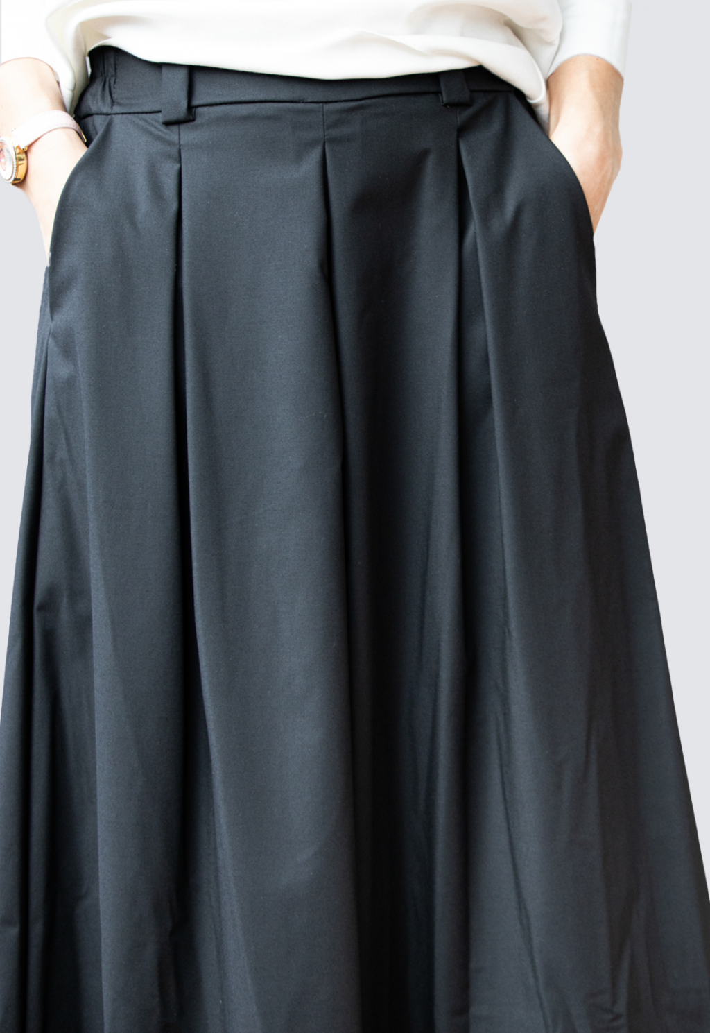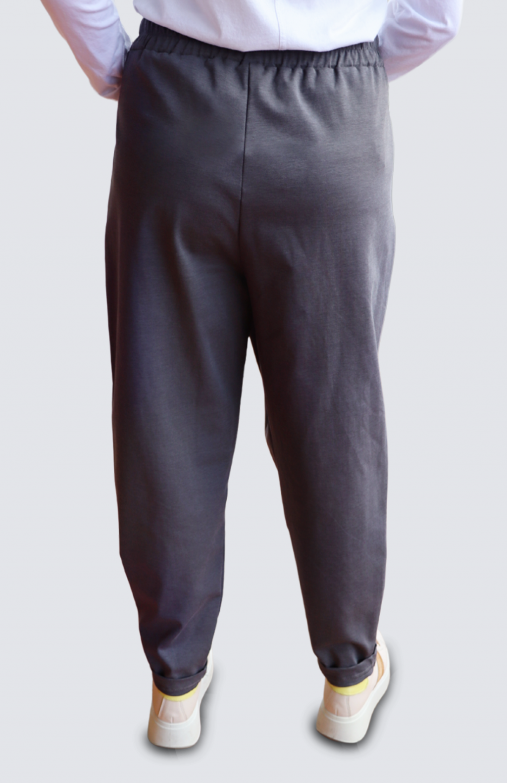 Pantalone in punto milano con cavallo sceso e pences.